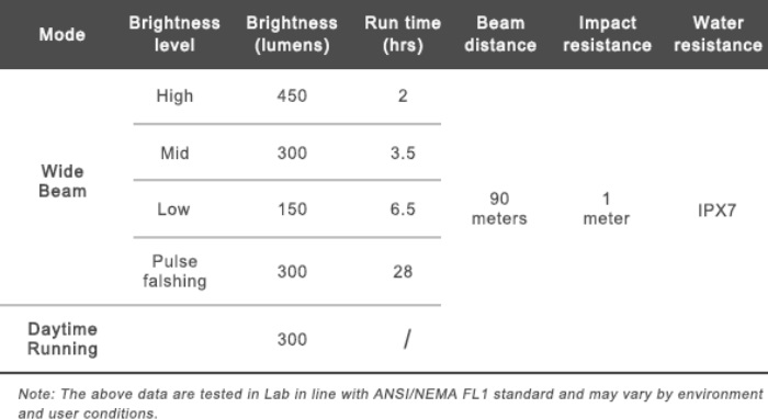 Szybkie ładowanie – pełne naładowanie trwa zaledwie 1,5 godziny. Podczas ładowania urządzenie może także oświetlać drogę.